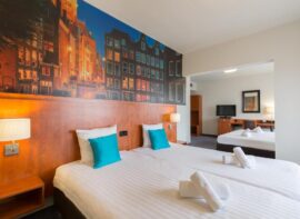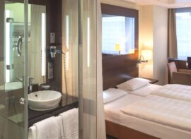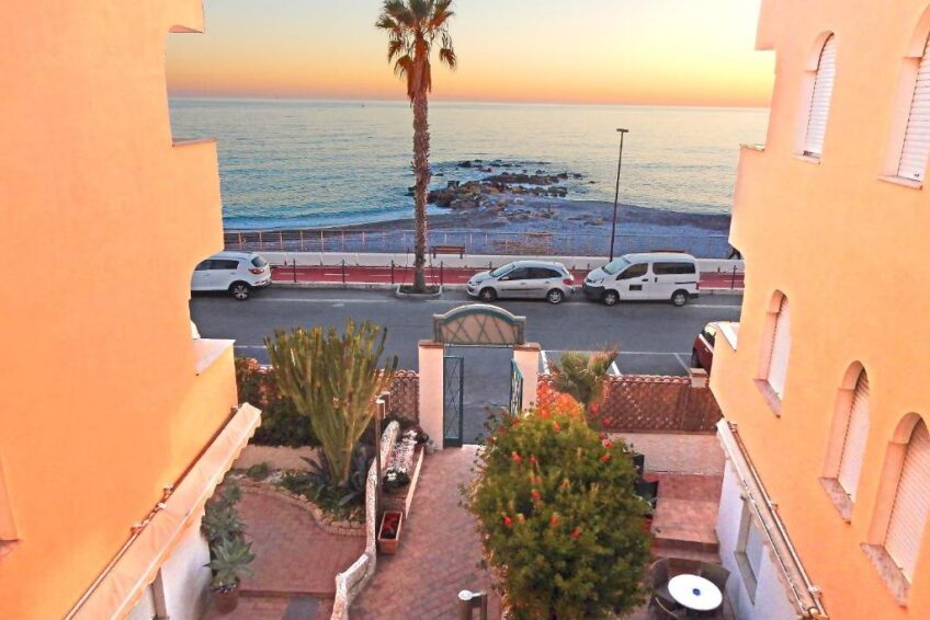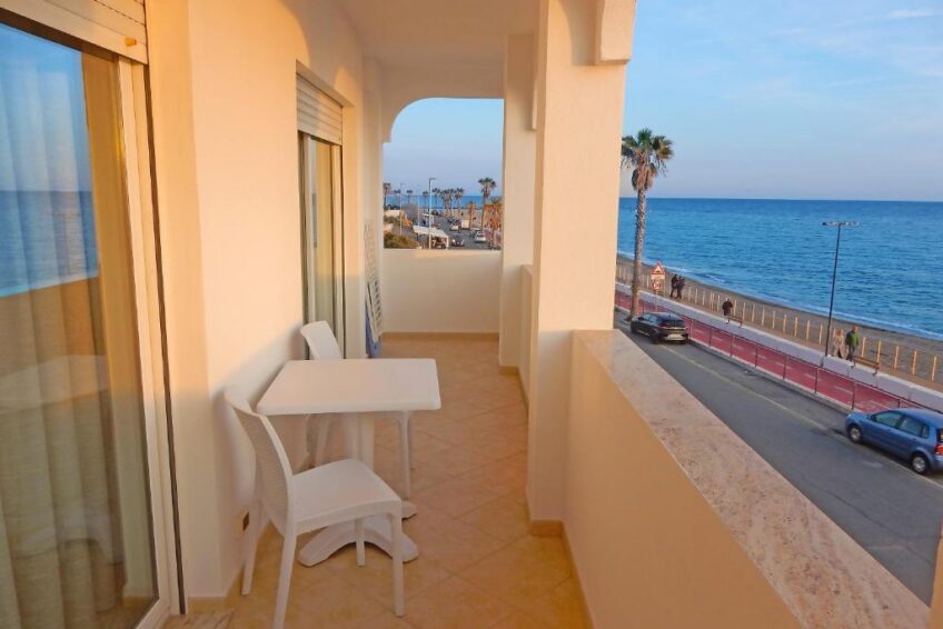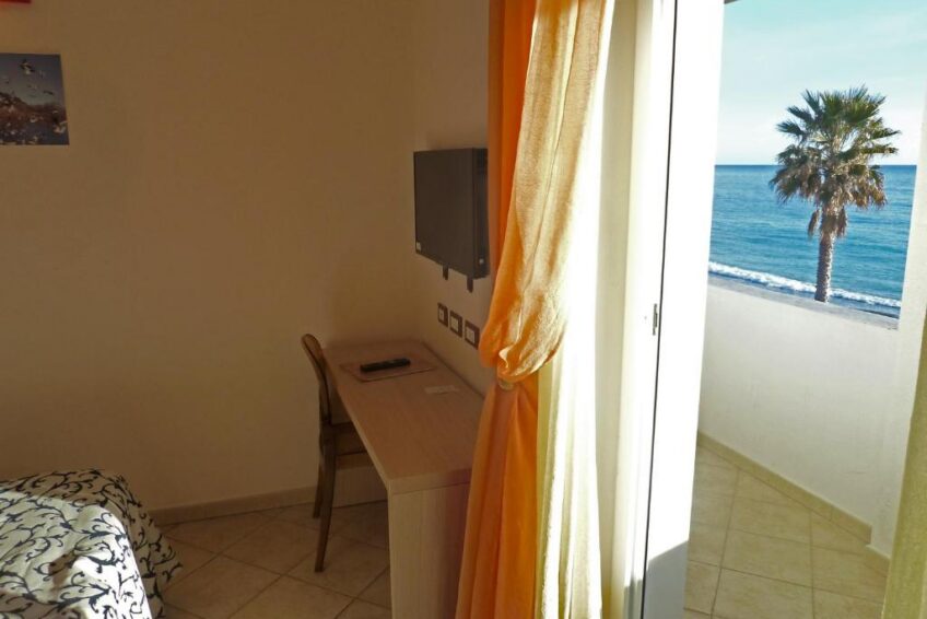 L’hôtel est un bâtiment moderne à deux minutes de la plage et offre une vue spectaculaire sur la côte.