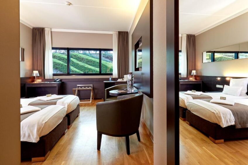 Aménagé dans un bâtiment futuriste, le Coque Hotel est entouré d’un grand parc agrémenté d’un petit lac et vous accueille sur le plateau de Kirchberg, à 8 minutes de route de la ville de Luxembourg.