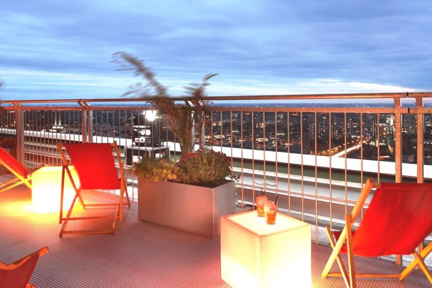 Vous pourrez vous détendre sur la terrasse du dernier étage, offrant une vue magnifique sur le centre de Berlin.