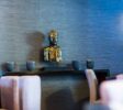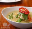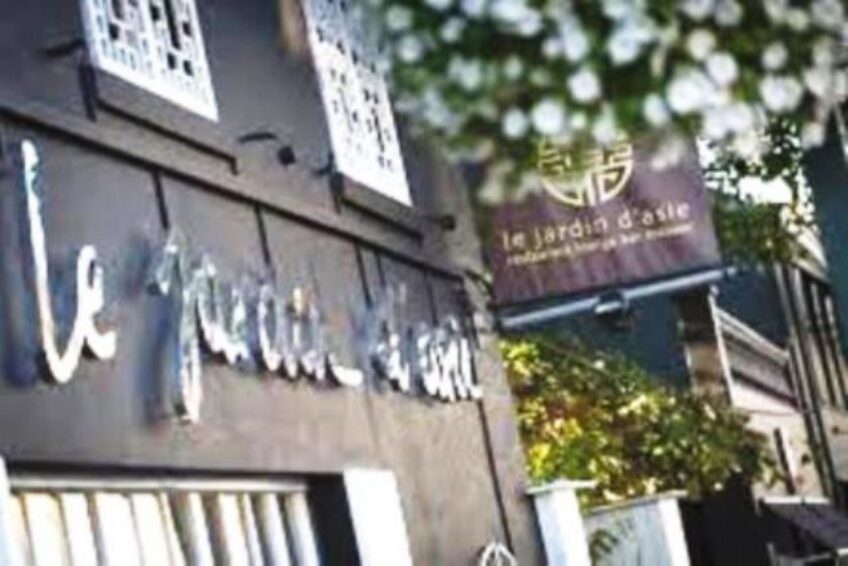 En entrant, nous sommes loin d’être déçus tant le cadre est typique sans tomber dans le “kitsch”… de merveilleuses boiseries, statues mystérieuses…sans oublier la magnifique terrasse agrémentée d’arbres et de bambous. Le décor est posé, le plaisir des yeux commence a émoustiller le désir de nos papilles, qui nous l’espérons sera à la hauteur de nos attentes.